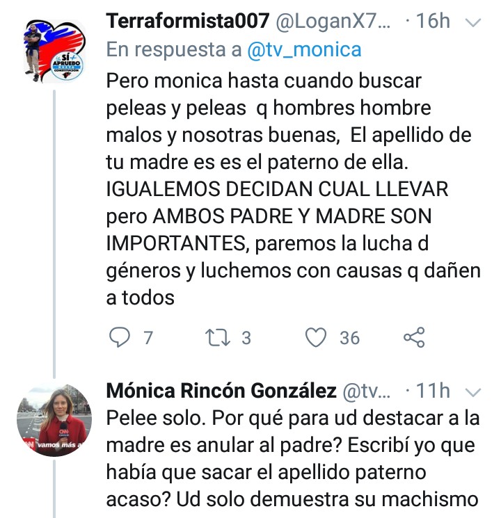 'Me llamo Mónica Rincón GONZÁLEZ. En Chile casi siempre nos presentamos con el apellido PATERNO solamente. Hoy quise rendir un homenaje a mi madre y a todas esas mujeres cuyos apellidos no figuran. #haymujeres #feminismo #micromachismos', escribió la periodista junto a una captura de pantalla.