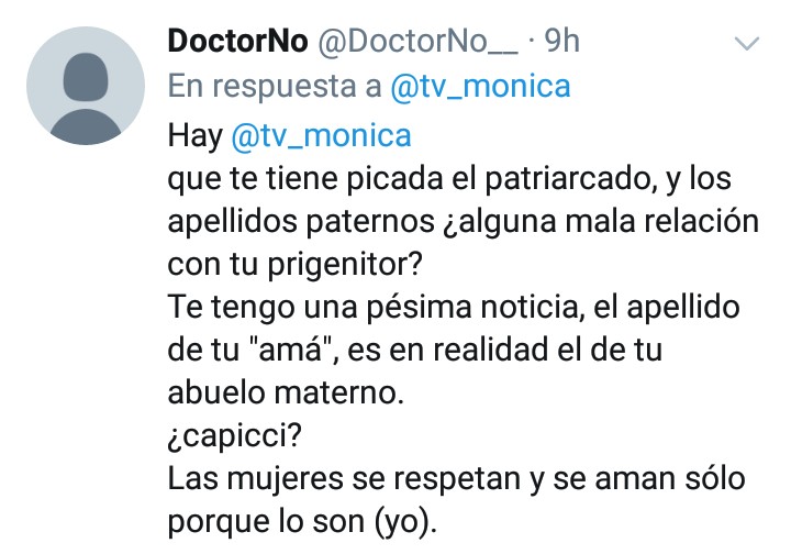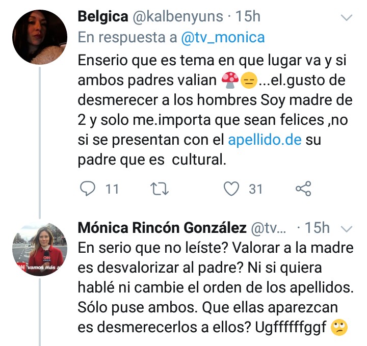 Hoy quise rendir un homenaje a mi madre y a todas esas mujeres cuyos apellidos no figuran. #haymujeres #feminismo #micromachismos pic.twitter.com/12YSgSUEmz— Mónica Rincón González (@tv_monica) August 5, 2020
