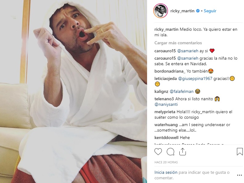 Y es que en la imagen, donde lo vemos con una bata blanca, muchos de sus seguidores lo acusaron mostrar más de la cuenta en sus partes íntimas. La foto en la que no podemos ver bien sus piernas, deja entrever un pequeño vistazo de Ricky sin ropa interior.