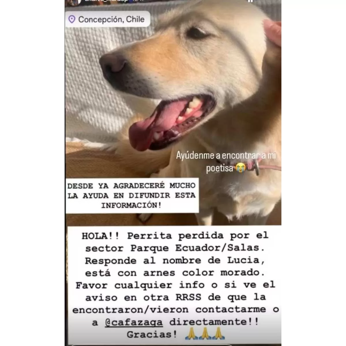 Tras conocerse su repentina partida, una publicación en redes sociales dio cuenta de que su perrita, Lucía, se encuentra pérdida desde ese momento.