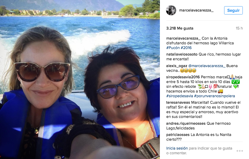 ¿El problema según la usuaria? La descripción de la fotografía, que decía lo siguiente: "Con la Antonia disfrutando del hermoso lago Villarrica". En los comentarios de la foto la usuaria @vero_munozz publicó: “Seguro que es tu nana, pues la nombras peyorativamente".