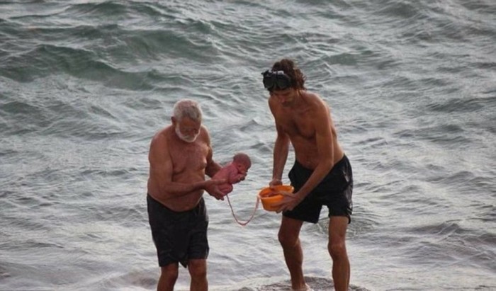 Un parto 100% natural tuvo un mujer rusa, que mientras se bañaba en el mar tuvo a su hijo, en vista y presencia de su familia y tuistas.