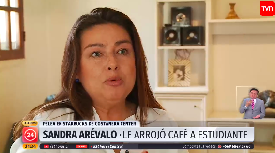 Ante la viralización del video, Sandra Arévalo decidió dar su versión de los hechos en el noticiero 24 Horas y aseguró que la estudiante también la agredió verbalmente y que producto del video que circula, ha recibido amenazas de muerte.