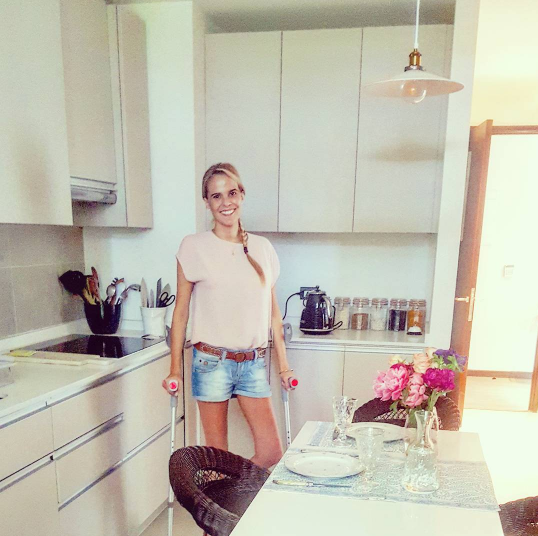 Y es que a pocos días de haber dado a luz a su primer hijo, Pedro Milagros, la conductora de televisión publicó una fotografía en donde aparece con muletas, pero en cuyo mensaje indica "¡buen finde para todos! Acá pensando qué vamos a cocinar este día que nos regala, entre otras cosas, ¡un sol espectacular! ¡La vida es hoy! ¡Sonríele!".