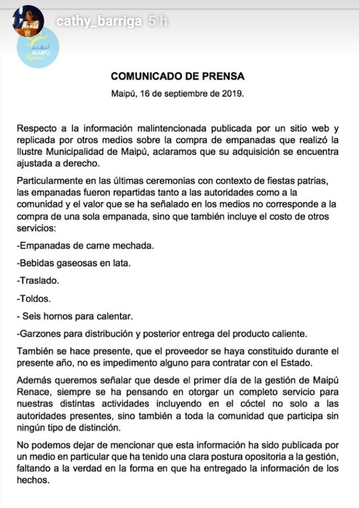 Este lunes, la municipalidad de Maipú estuvo en la polémica por la millonaria compra de empanadas, para celebrar Fiestas Patrias, que tuvo un costo superior a los 26 millones de pesos.