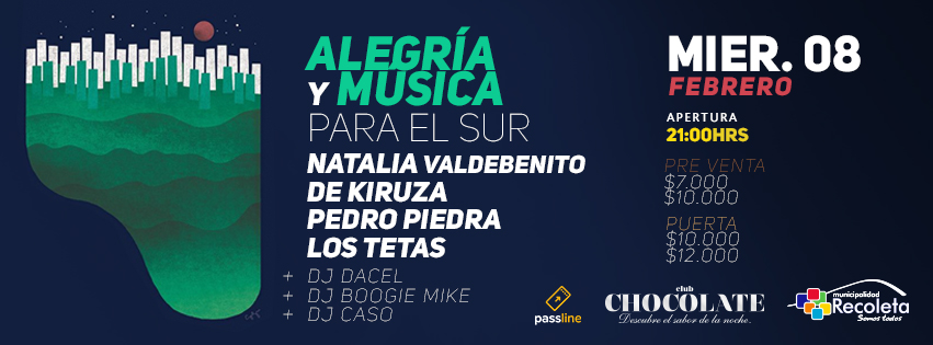 Este show se realizará este miércoles 8 de febrero, desde las 21:00 horas, en el Club Chocolate y las entradas están a la venta en Passline y el sitio de Club Chocolate. Eso sí, es un concierto para mayores de 18 años. Todo el dinero recaudado irá a Desafío Levantemos Chile para que la institución reparta lo que se necesita en las diferentes localidades y familias más afectadas.