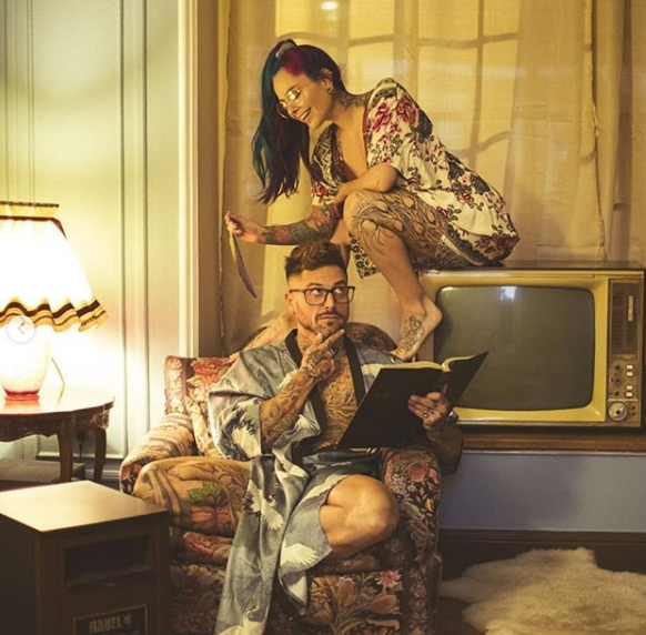 Además, la joven es fotógrafa y también es modelo de suicide girls. Además es locutora radial y conduce un programa junto al español. De hecho, fue ella quien invitó a Pascual a la radio.