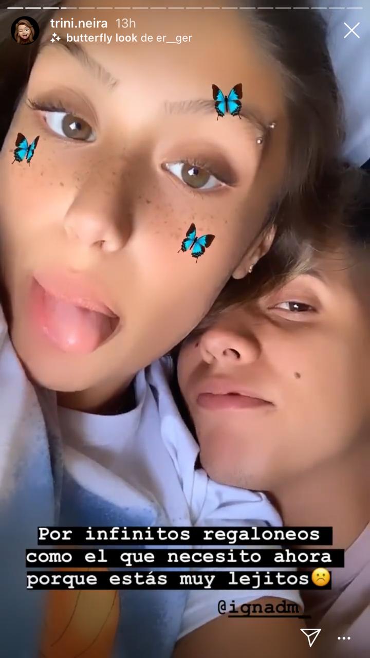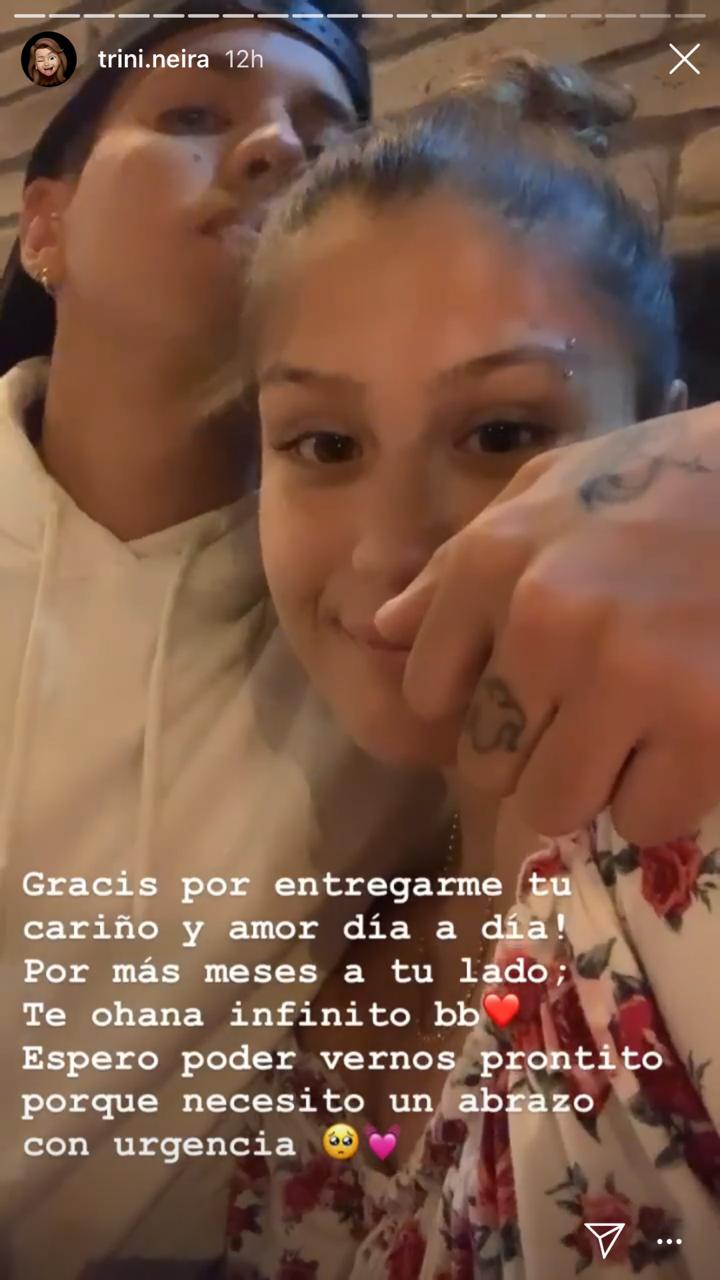 A través de sus historias de Instagram Trini compartió una serie de registros con su pololo, agradeciendo el tiempo que han pasado juntos. "Por muchos meses más a tu lado, gracias por todo mi porotito", escribió en una de sus stories.