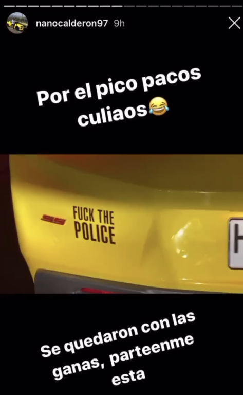 En sus publicaciones, el hijo de Raquel se refirió a Carabineros, aludiendo a que la fuerza policial 'se quedó con las ganas' de pasarle un parte.