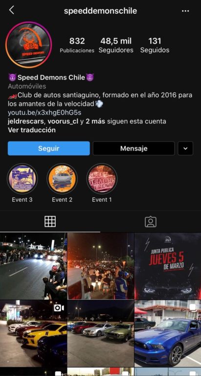 La acitvidad fue convocada por Speed Demons Chile en Instagram, que es un "club de autos santiaguino, formado en el año 2016 para los amantes de la velocidad". El grupo está presidido por Hernán 'Nano' Calderón, hijo de Raquel Argandoña.