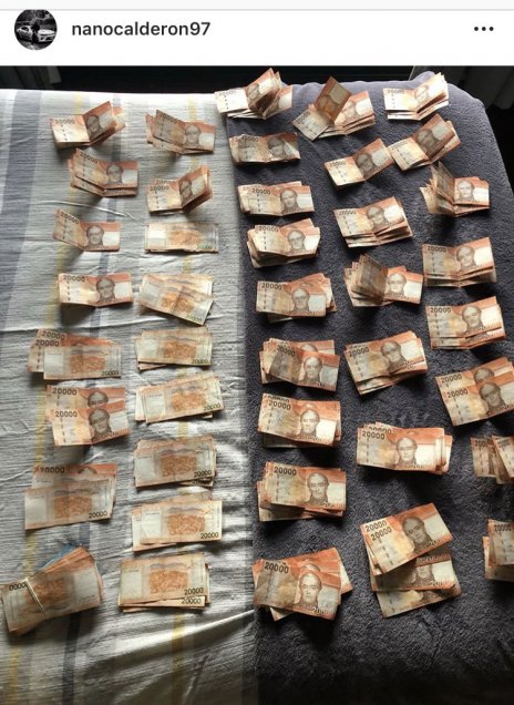 Así, en su último registro compartido a través de Instagram Stories, el estudiante mostró su cama llena de billetes que acompañó con el siguiente texto: