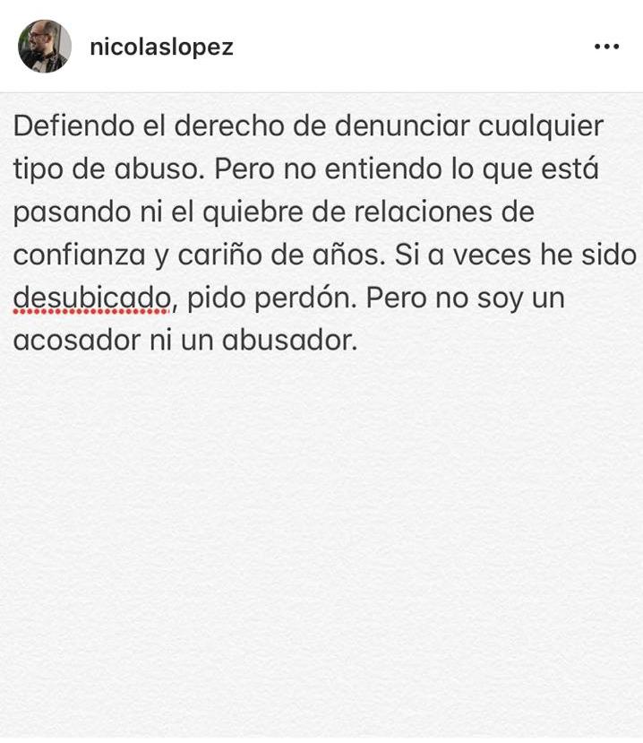 Lee también: Ocho mujeres denuncian a Nicolás López de acoso laboral y abuso sexual