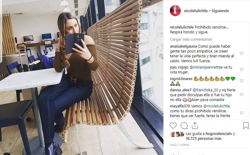 "Prohibido rendirse...Respira hondo y sigue", escribió la ex chica reality, cuyo hijo permanece recluido en un centro del Sename por el baleo a otro menor en el que estuvo envuelto.