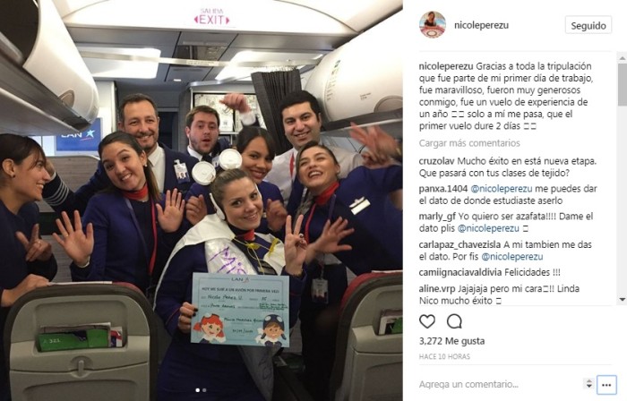 Nicole en su cuenta de Instagram, compartió una fotografía en donde confiesa la situación: “Un salud por los más de 70 tripulantes que quedamos sin trabajo a pesar de haber entregado nuestro 100% para la empresa y en medio de una negociación colectiva ¡Mal muy mal!”.