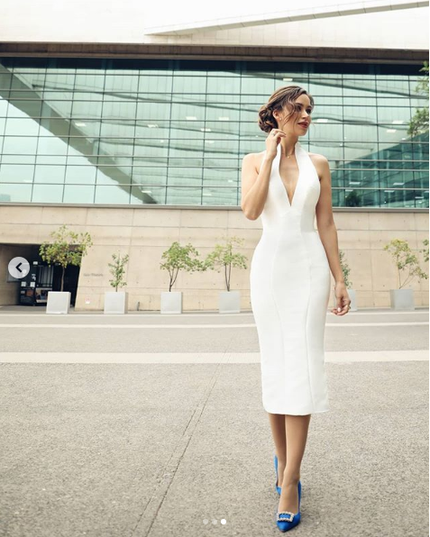 Y lo que más se robó la atención en las fotos, fue obviamente el look de Nicole, donde lució su silueta en un vestido blanco midi ajustado, con un profundo escote en "v", dándole un poco de color con sus zapatos de un tono azul eléctrico.