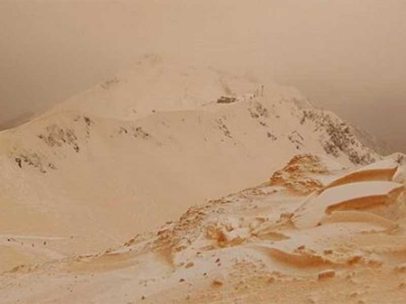 La caída de nieve anaranjada, se produjo tras un inusual choque entre la nieve siberiana y el polvo proveniente del desierto del Sahara.