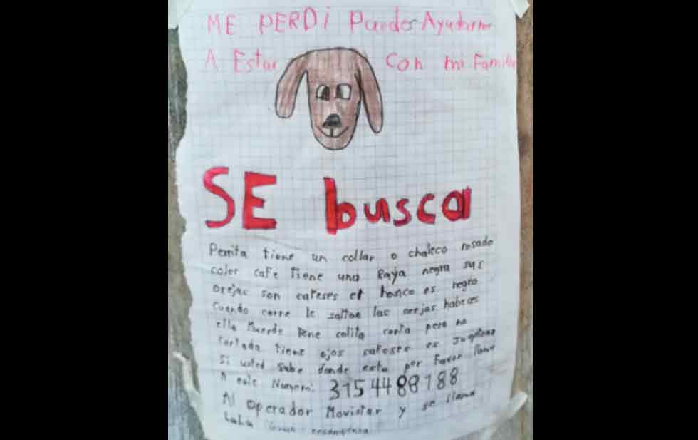 En viral se han convertido el dibujo y el video, en el que se muestra cómo un niño hizo públicamente un llamado buscando a su perrita LuLú, en Colombia.