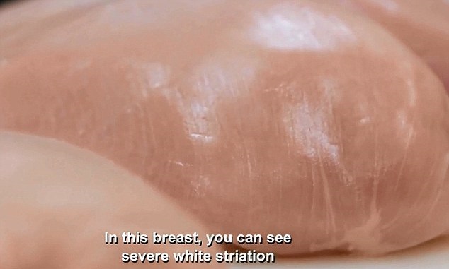 De acuerdo a los científicos consultados en el reportaje, consignado por el medio británico Daily Mail, la velocidad a la que crecen las aves provoca que se formen líneas blancas en la carne.