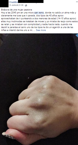 La situación se produjo cuando la mujer penquista, psicóloga de profesión, se desplazaba en un vehículo de la locomoción colectiva de la línea San Remo, "donde no cabía un alma más", describió en la publicación de Facebook donde contó lo sucedido.