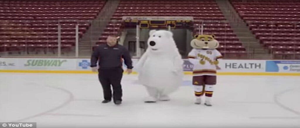 Eso le pasó a una marca de autos al intentar grabar su spot en una pista de patinaje sobre hielo junto a las mascotas de un equipo local, pero lo que no contaban era que una de ellas no sabía mantenerse en pie dentro de la cancha congelada.