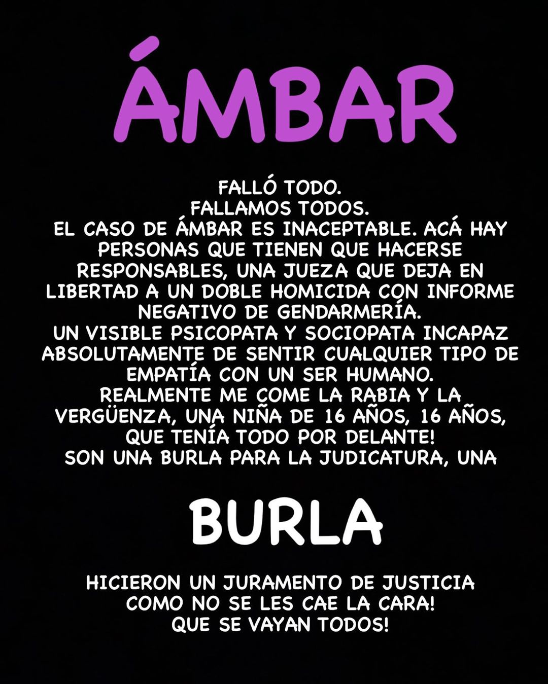 “Ámbar. Falló todo. Fallamos todos. El caso de Ámbar es inaceptable“, partió escribiendo en un texto que compartió en su Instagram.