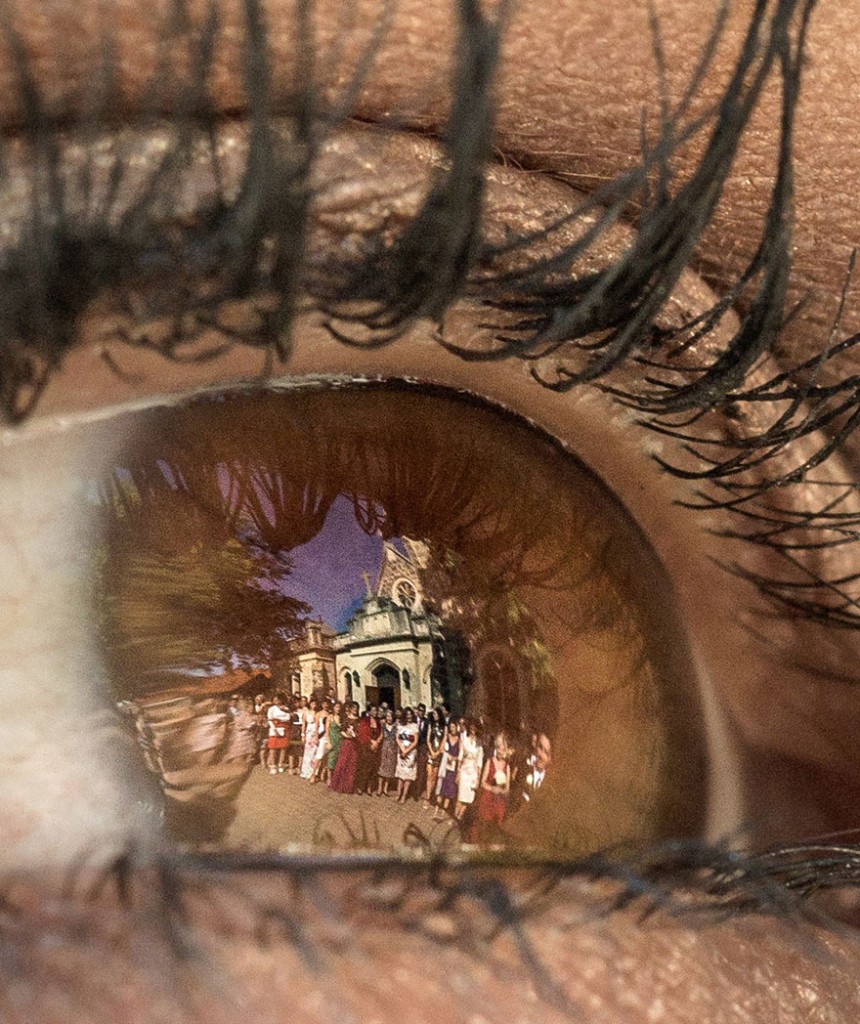 Todo comenzó en 2011 cuando estaba sacando fotos de una boda y se dio cuenta de que la flamante novia se reflejaba en el ojo de su Dama de Honor. ¡Un gran acierto! Para el artista, lo más importante es que las personas retratadas sonrían: "Esto relaja el tiro, muestra pliegues naturales de los ojos, y aunque la foto esté así de cerca, uno puede darse cuenta que el sujeto está sonriendo".