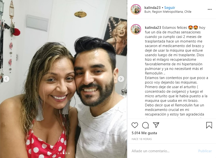 "Dios hizo el milagro recuperándome favorablemente de mi hipertensión pulmonar y ya no necesitaré más el Remodulin… Poco a poco voy dejando las máquinas. Primero dejé de usar el arturito (concentrado de oxígeno) y luego el micro arturito que le había puesto a la máquina que usaba en mi brazo!", agregó.