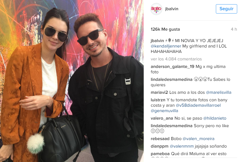 En una foto, que publicó en su cuenta de Instagram, se mostró muy cercano a Kendall Jenner en Nueva York y escribió: "Mi novia y yo jajajaja". A pesar de que todo se trató de una broma, el colombiano ha manifestado en varias oportunidades que ella es su prototipo de mujer.