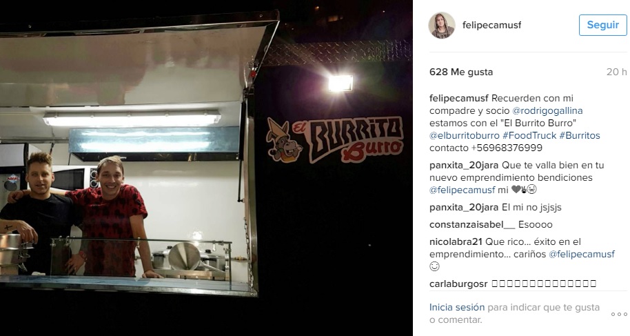 Según informa el sitio web "Página 7", Felipe compartió en su cuenta de Instagram, una fotografía de su nuevo local de comida móvil, El Burrito Burro, donde se ofrecen diferentes tipos de burritos mexicanos, a lo pobre, Texmex, Veggie y Country. Felipe y Rodrigo, también explicaron que el carrito funciona solo para eventos y que próximamente quieren instalarse en La Serena.