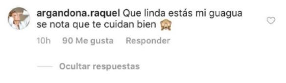 "Qué linda que estás mi guagua se nota que te cuidan bien", fue el comentario, al que después agregó otro que decía: "¿Viste? los padres siempre tienen la razón te queremos".