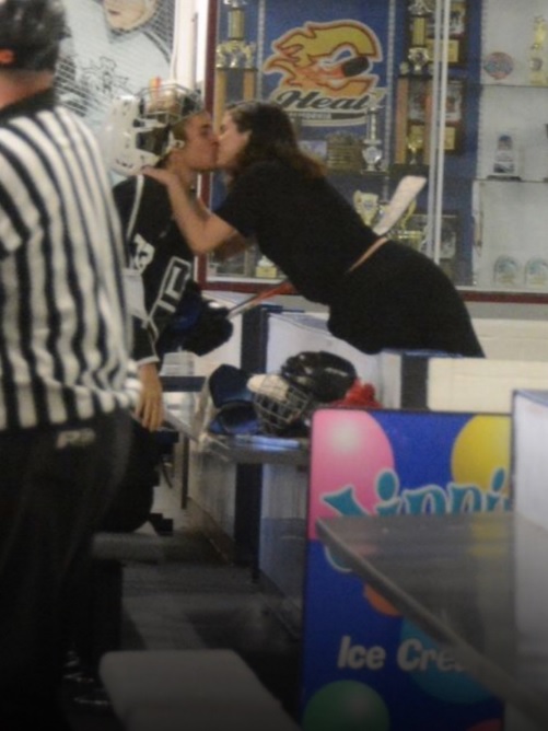 Y es que comenzaron a circular una serie de imágenes, donde los vemos dándose un apasionado... ¡beso! La pareja fue vista en una pista de hockey en la ciudad de Los Angeles, donde la cantante estuvo acompañada de su pequeño perrito en apoyo de Bieber quien estuvo jugando.