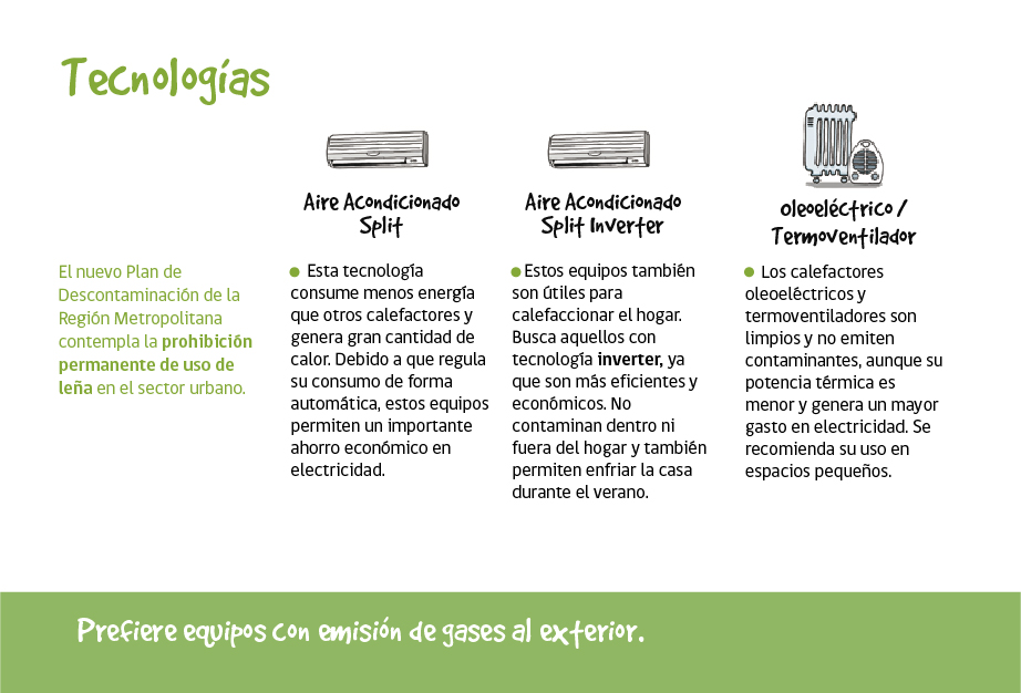 El Ministerio del Medio Ambiente lanzó el sitio web CalefacciónSustentable.cl, donde nos podemos informar sobre las opciones eco amigables que hay para calefaccionarse en invierno, de acuerdo a los distintos lugares del país.