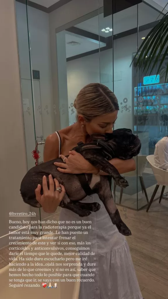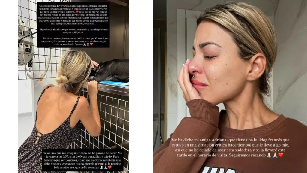 "Cocco este finde tuvo varios ataques epilépticos (nunca los había tenido) lo llevamos a urgencias y le hicieron un Tac donde vieron que tiene un tumor en el cerebro", explicó la influencer sobre el problema de salud de su perro bulldog francés.