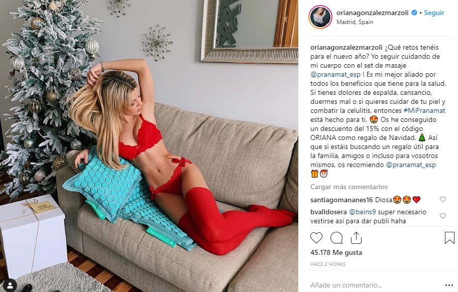 La ex chica reality, Oriana Marzoli, sorprendió a sus seguidores con una provocativa postal navideña, donde aparece posando junto a su árbol de Navidad.