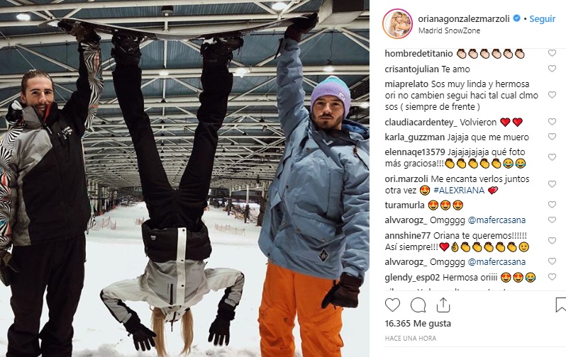 Y en ese último reality Oriana dijo que no quería estar cerca de él porque traería problemas con su novio de entonces, Luis Mateucci. Pero ahora que terminaron, la venezolana volvió a encontrarse son Álex en España, lo que dio a conocer a través de sus historias de Instagram.