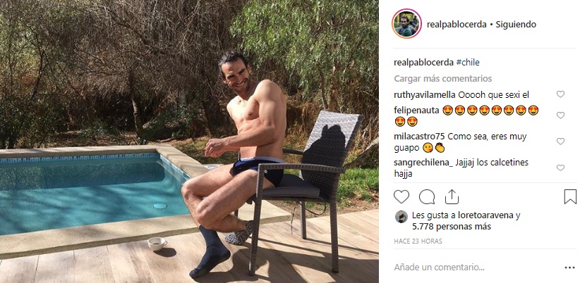 "#Chile", escribió el actor de 38 años para acompañar la foto en la que aparece relajado junto a una piscina.