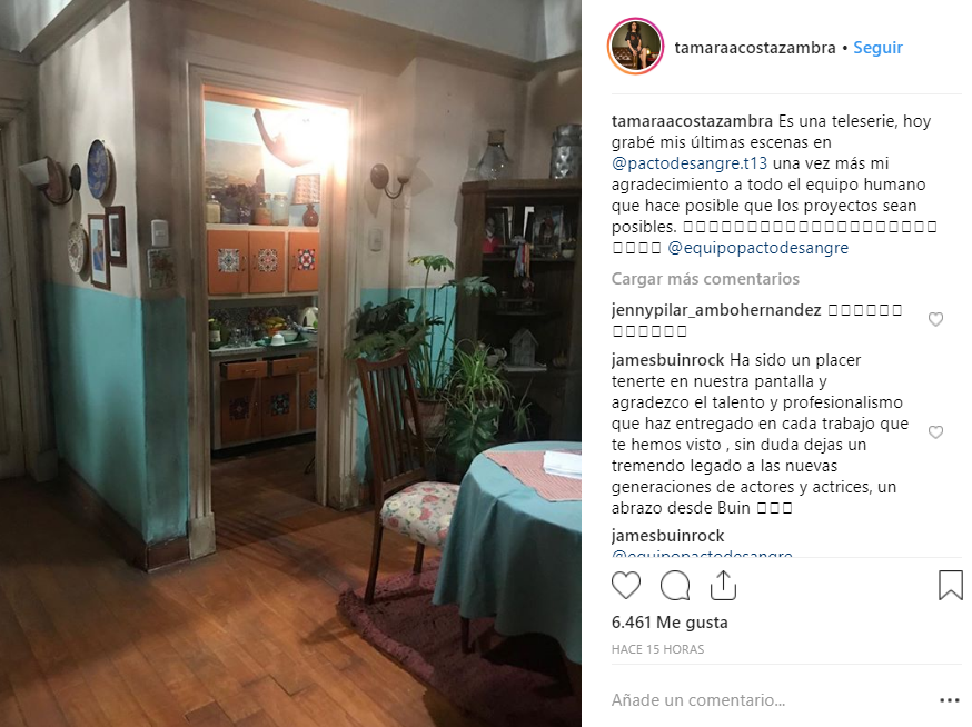 “Es una teleserie, hoy grabé mis últimas escenas en @pactodesangre.t13. Una vez más mi agradecimiento a todo el equipo humano que hace posible que los proyectos sean posibles”, escribió.
