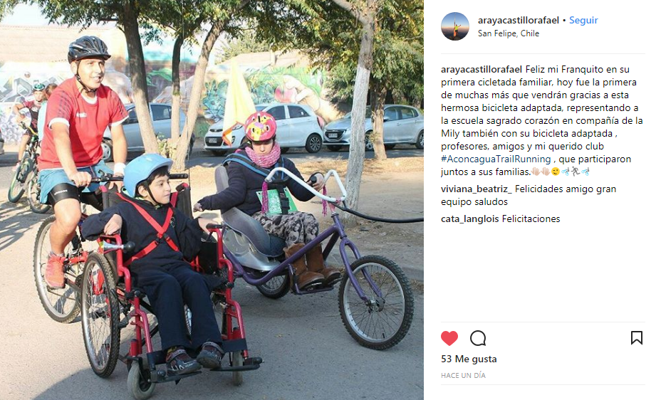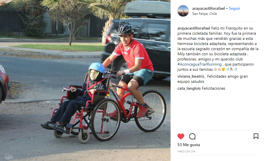 Se trata de Rafael Castillo, quien adaptó su bicicleta para poder salir a pasear junto a su hijo que no puede caminar. Fue en la fanpage "Héroes de Aconcagua" donde viralizaron esta historia que ha conmovido a todos los que la han visto.
