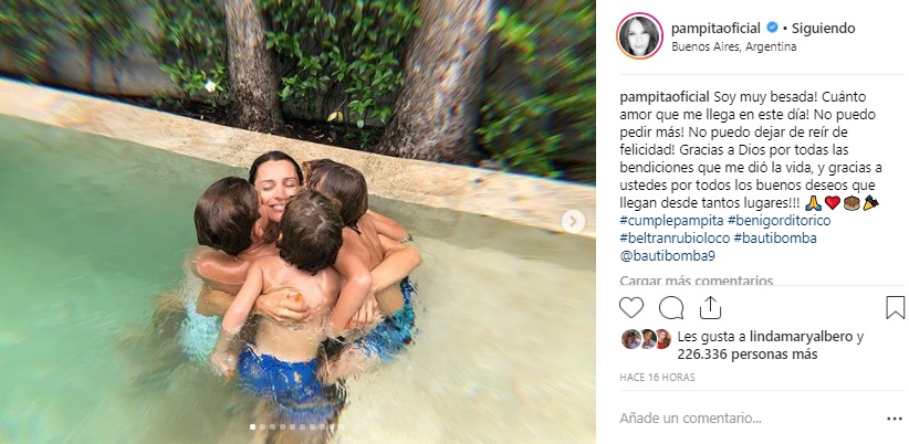 "Soy muy besada! Cuánto amor que me llega en este día! No puedo pedir más! No puedo dejar de reír de felicidad! Gracias a Dios por todas las bendiciones que me dio la vida, y gracias a ustedes por todos los buenos deseos que llegan desde tantos lugares!!!", escribió la modelo para acompañar la publicación que subió a su Instagram.