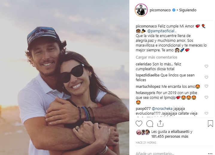Por su parte, la ex de Benjamín Vicuña retomó su relación amorosa a fines del 2018 con el ex tenista Pico Mónaco, quien también sorprendió a su amada con una romántica dedicatoria.