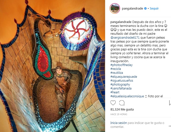 Andrade también agradeció el apoyo que de su padre, quien lo ayudó con el diseño de su casa: "Este es el resultado del diseño de mi padre que fueron peleas tras peleas por que siempre quería ponerle algo mas, siempre un detallito mas, pero gracias papi esta es la tina con ducha que siempre yo soñé tener".