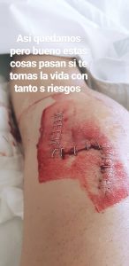 El viernes estaba bajando de una cerro y se cayó de forma inesperada, provocandole una fractura expuesta en su rodilla izquierda. Actualmente se encuentra en su casa, pero la recuperación es lenta..