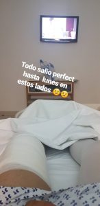Mientras tanto ella declaró en su cuenta de Instgram: “Cuando tu pololo es un pastel con cero instinto de auto preservación y se hace una fractura expuesta en la rodilla a 2 días de un viaje…… pero al final igual lo quieres”.