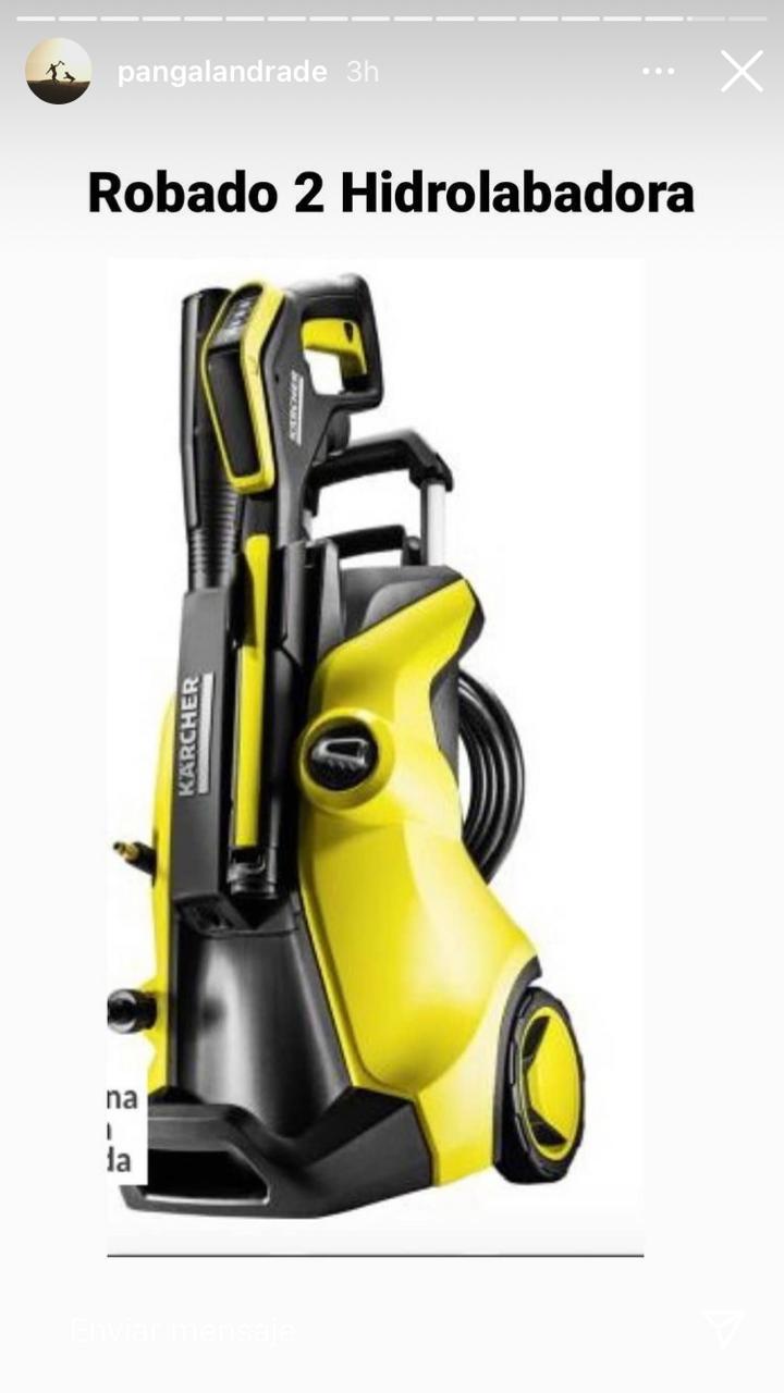 En su publicación, el deportista parte diciendo: "Después de perder todo en el aluvión...ayer en la noche nos entraron a robar". Mientras daba a conocer los objetos que desaparecieron, Pangal Andrade indicó que iba a compartir fotos para mostrar lo que le robaron: un horno, un parlante, dos hidrolavadoras y un compresor de marca Indura.