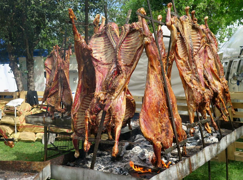 - Stands con comida a la parrilla