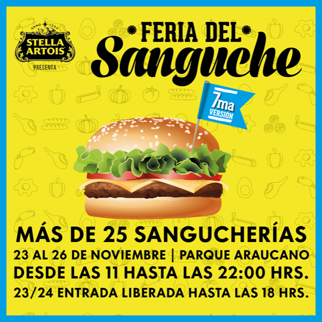 Por séptima vez este evento se realiza en el Parque Araucano y tal como en años anteriores, la Feria del Sánguche expondrá una inigualable variedad de estas  preparaciones que son parte de las costumbres chilenas. Los emblemáticos sánguches clásicos, con productos del mar, de plateada, con prieta, y tantos más que sorprenderán su paladar. Además, podrán acompañarlos con cervezas, jugos, helados y un “Mercadito” atiborrado de productos gourmet y artículos para la vida al aire libre, ideales para la temporada y los regalos de Navidad.