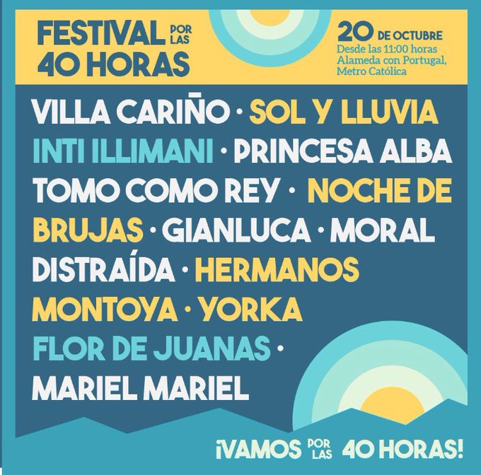 Este evento será justo afuera del Metro Universidad Católica en la intersección de Alameda con Portugal. Y se realizará el domingo 20 de octubre, a las 11 de la mañana. Otros de los artistas que estarán son Villa Cariño, Princesa Alba y Moral Distraída, Yorka. Puedes revisar la programación completa, aquí.