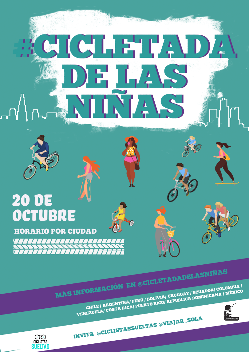 Y empezamos con una cicletada de las niñas. Es una invitación a todas las niñas de la ciudad de Santiago y el mundo a tomarse la calle en dos ruedas.