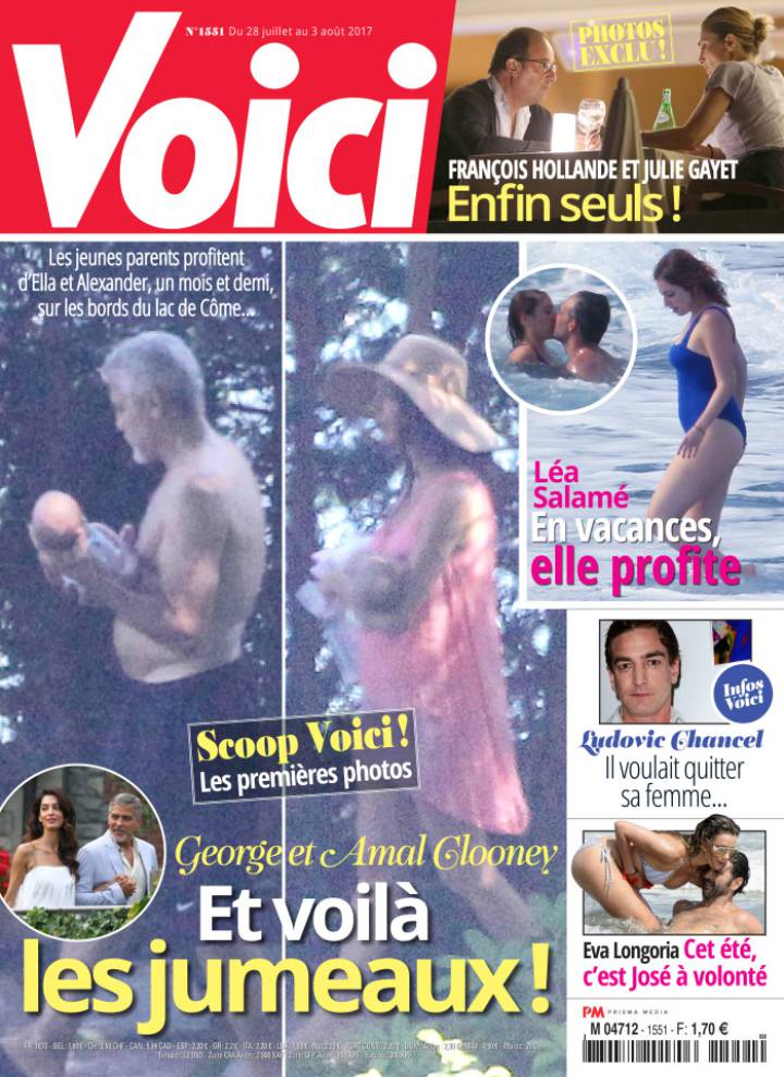 Las fotos, donde se ve a George y Amal con sus hijos en brazos, fueron publicadas nada menos que en la portada de la revista "Voici". Recordemos que los pequeños nacieron el pasado 6 de junio y desde entonces la prensa ha estado detrás de ellos para obtener alguna imagen. La pareja ha guardado hermetismo desde que se anunció su embarazo.