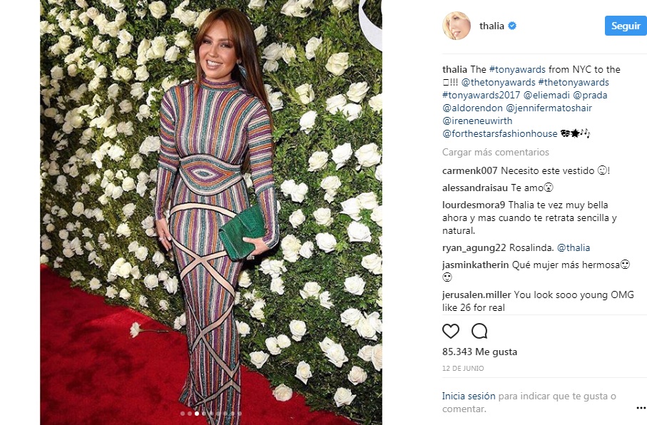 En el primer lugar tenemos a Thalia, quien asistió en junio a la gala de los Premios Tony luciendo un vestido con líneas geométricas de la diseñadora libanesa Elie Madi.